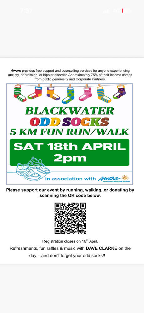 Starts outside Corrigan’s Bar, Blackwater at 2pm.