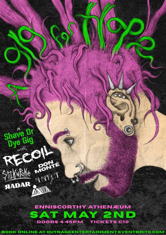 “A Gig for Hope” in aid of the Hope Cancer Centre, Enniscorthy. It’s a Shave or Dye in The Athenaeum, Enniscorthy on Saturday 2nd May, doors open at 4.45 pm with the Wexford band Recoil performing for the event Tickets are €10 Book online at Outrangeentertainment.eventbrite.com
